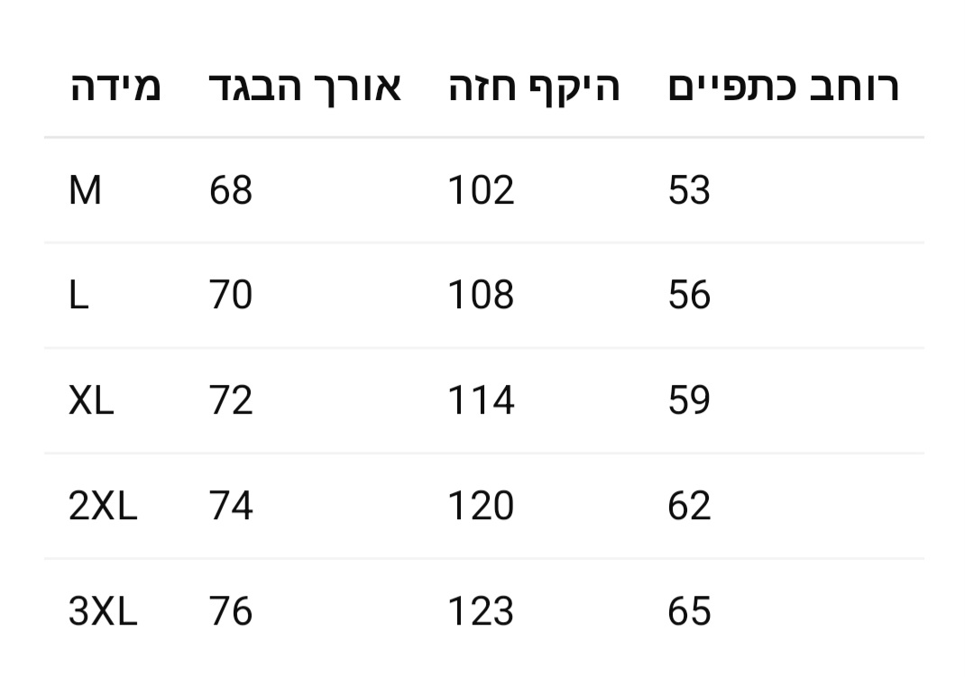 M, L, XL, 2XL, 3XL