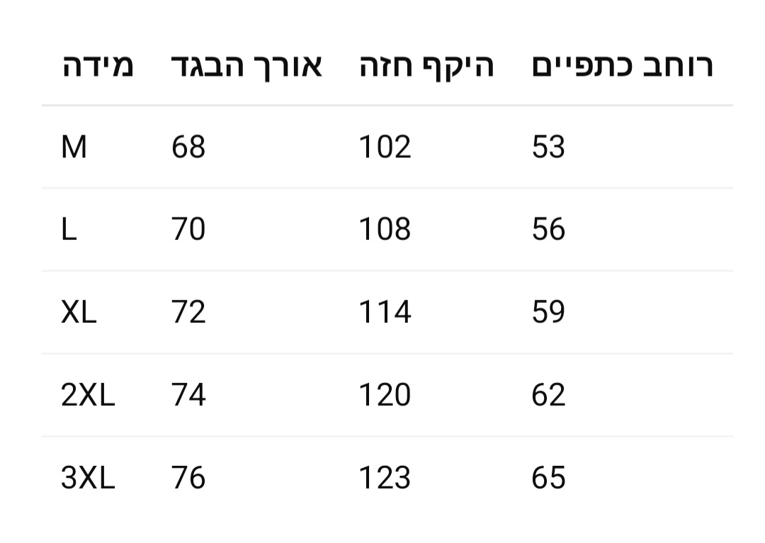 M, L, XL, 2XL, 3XL