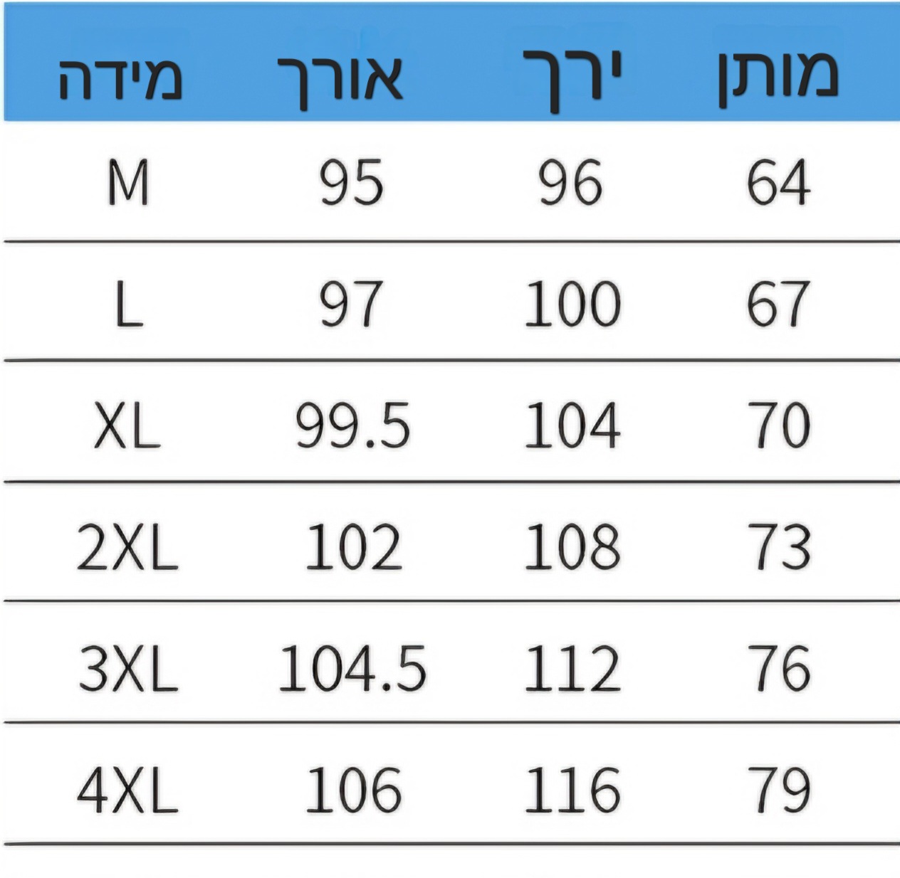 M, L, XL, 2XL, 3XL, 4XL