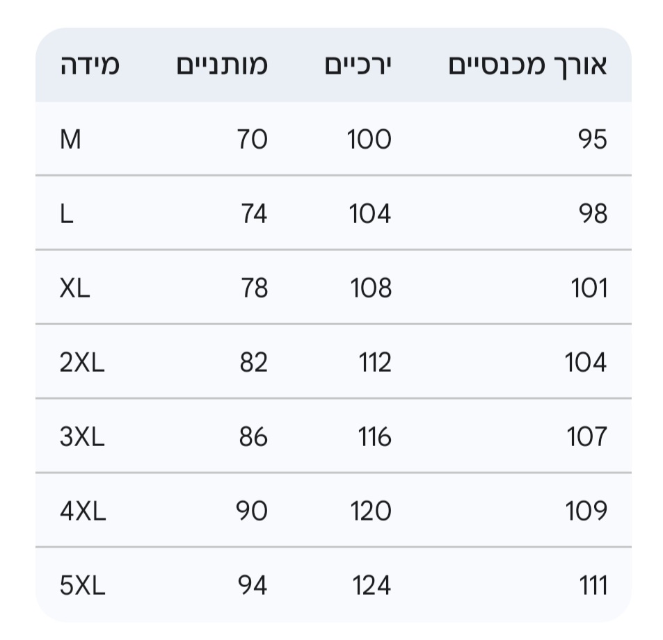 M, L, XL, 2XL, 3XL, 4XL, 5XL