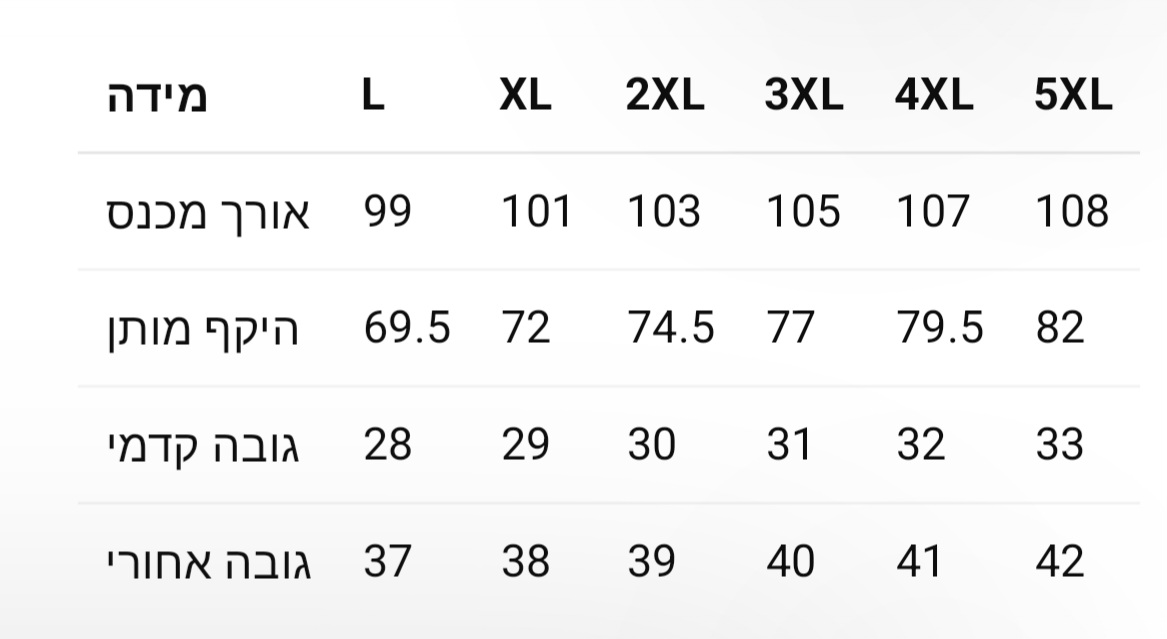 L, XL, 2XL, 3XL, 4XL, 5XL