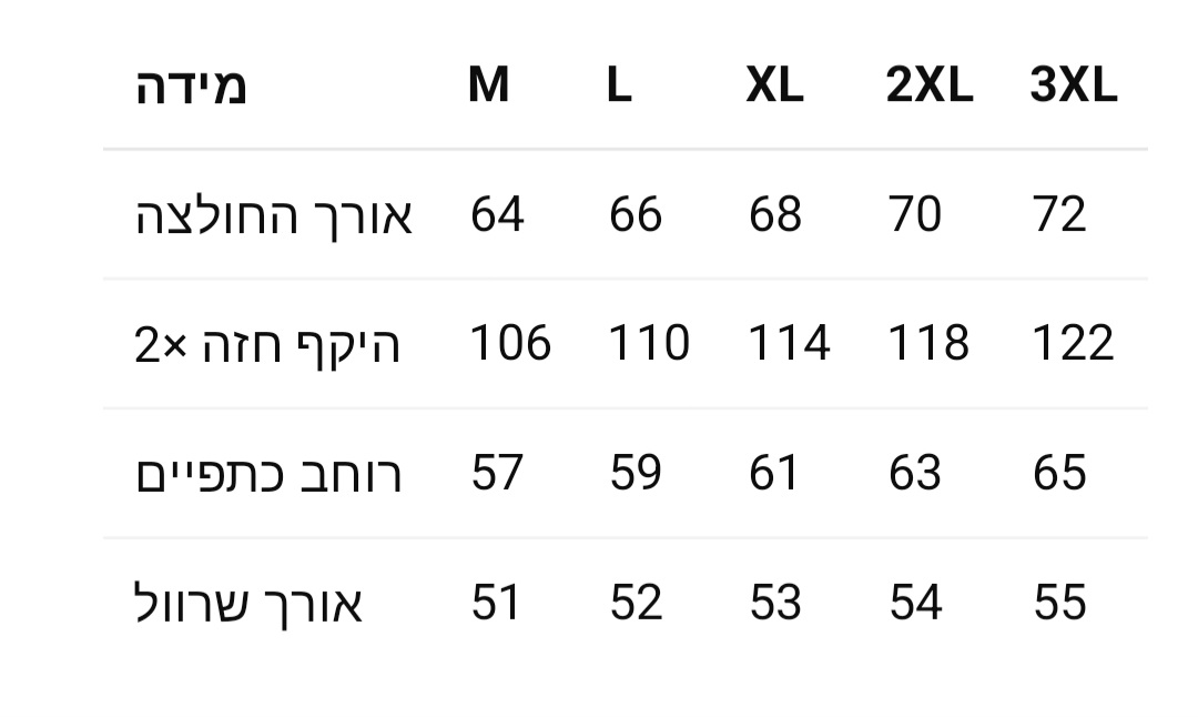M, L, XL, 2XL, 3XL