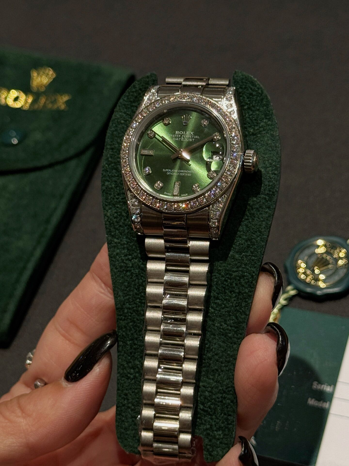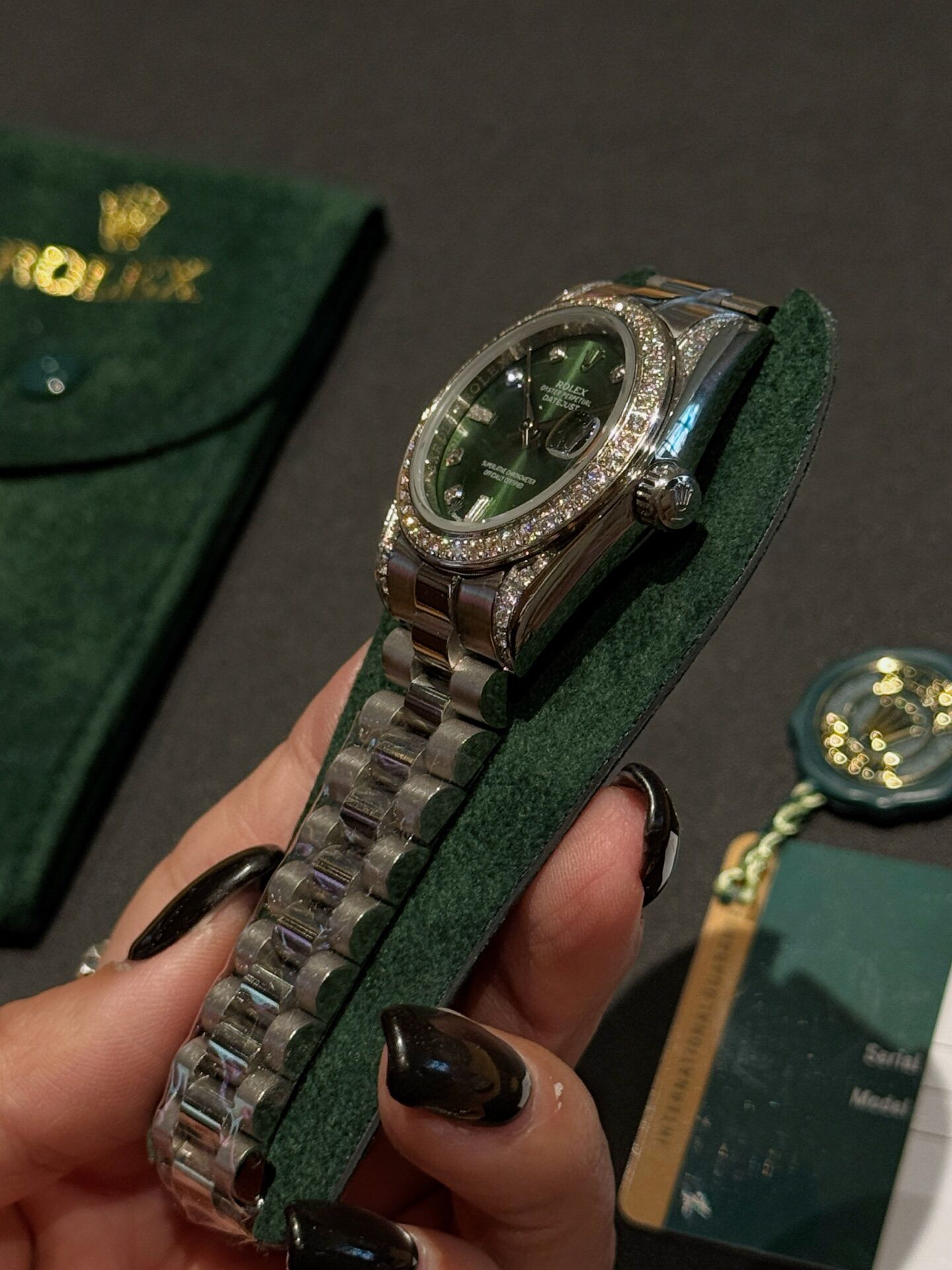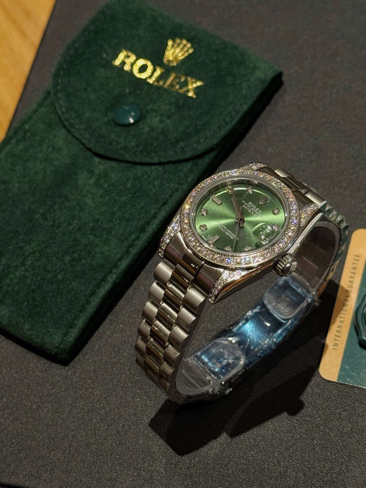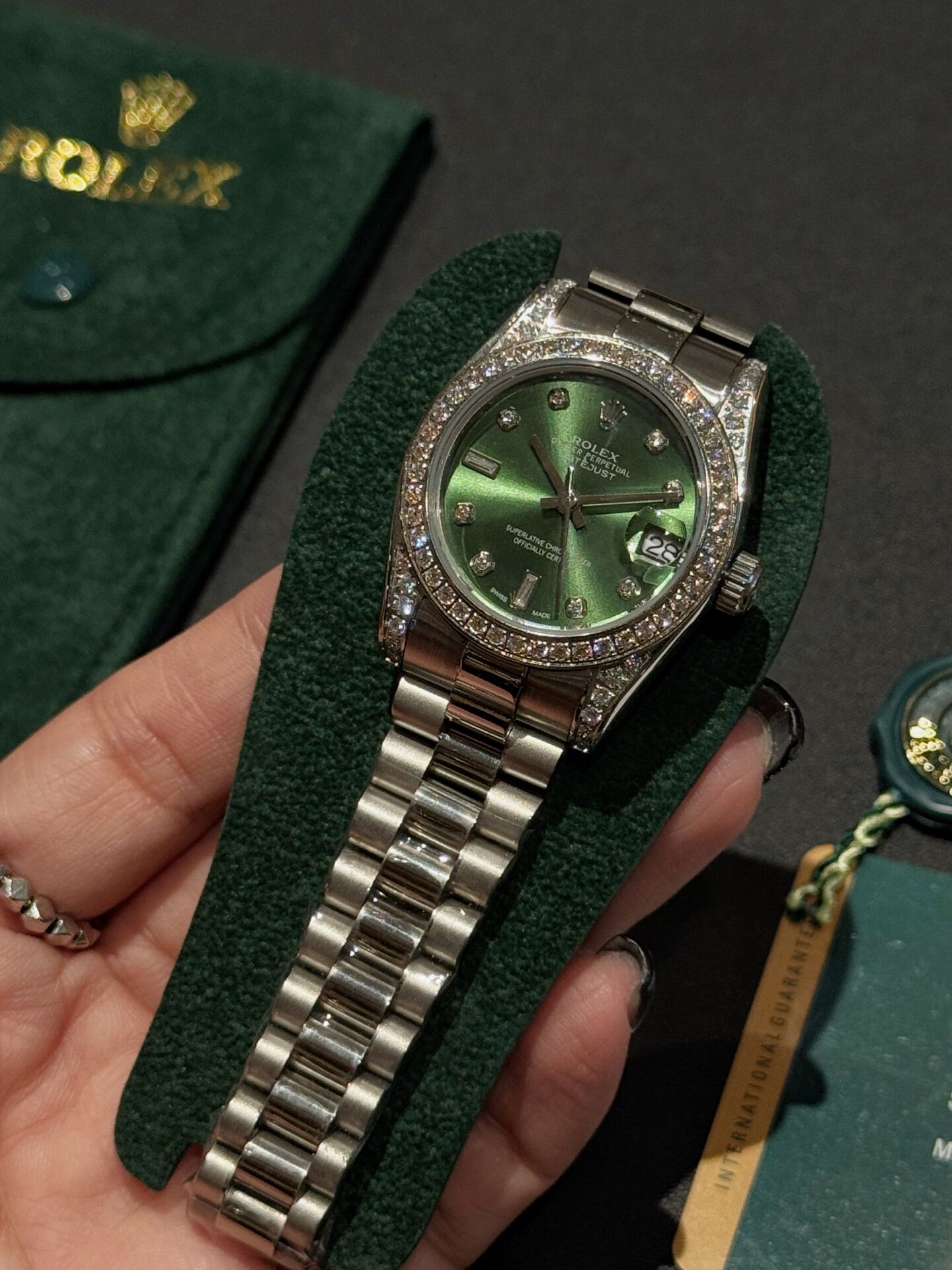 פלדת אל־חלד 316 איכותית, שיבוץ אבנים יוקרתי וגימור ברמה גבוהה.מידות 31 מ״מ.